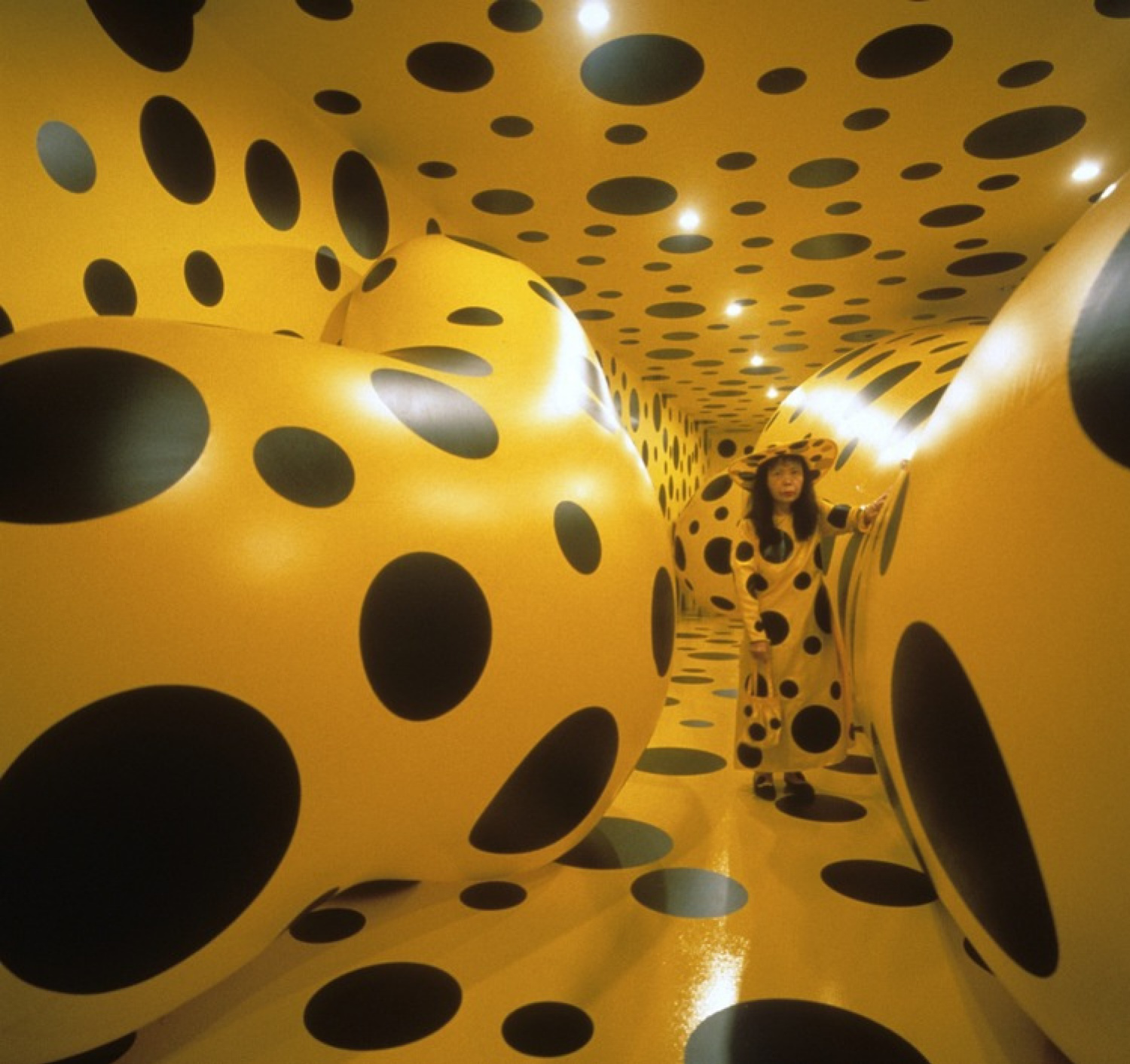 От живописи Кусама переходит к скульптуре и инсталляции, преодолевая внутренние страхи, демонстрируя зрителям собственные навязчивые идеи. Знаменитый узор из горошин становится узнаваемым, а Кусама получает ласковое прозвище «Дотти» (от английского «dot» — точка).