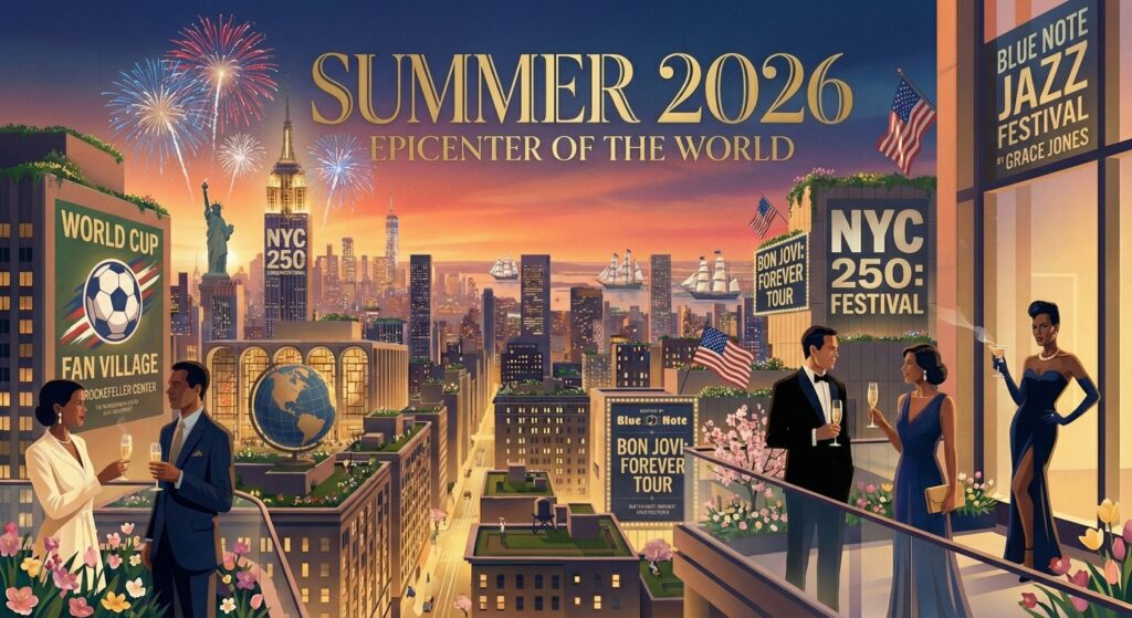 5. World Cup Fan Village @ Rockefeller Center 📅 Дата: 4–19 июля 2026 Атмосфера: Знаменитый каток застелют газоном. Вы смотрите финал Чемпионата мира на гигантских экранах, стоя на траве в «ущелье» небоскребов под золотым Прометеем. Энергетика будет зашкаливать.