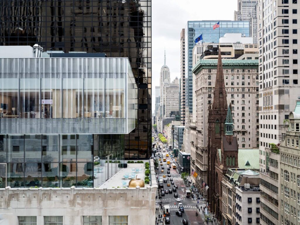 Если нью-йоркер зашёл в знаменитый магазин Тиффани на 5 Ave (а в рождественские дни, когда там особое праздничное убранство, очень стоит почтить его своим вниманием) – он не забудет подняться на лифте наверх и посмотреть на город из окна, а если разрешат, то с открытой террасы!
