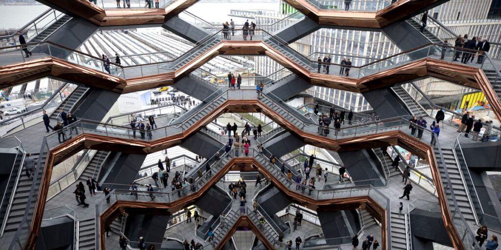 Если вы собрались прогуляться по High Line – да, виды с неё и на город, и на Нью-Джерси очень хороши! – то есть пройтись от Vessel до Little Island и Whitney Museum, можно заодно посмотреть на город сверху, забравшись на верхушку этого необычного сооружения. Однако если четверг, когда это развлечение для нью-йоркеров бесплатно , вам неудобен, а платить за билет, да к тому же в очереди стоять, как-то досадно – я бы посоветовала просто зайти в здание Hudson Yards, где много милого и интересного, и подняться на верхний этаж: вид оттуда ничуть не хуже!