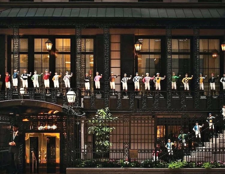 Фасад клуба украшает армия из 37 цветных фигурок жокеев. Первый появился в 1930-х как подарок от богатого клиента, а позже традиция стала обязательной для завсегдатаев — владельцев ипподромов. Каждая фигурка раскрашена в уникальные цвета конюшен семей Меллон, Вандербильт и Огден Фиппс.
