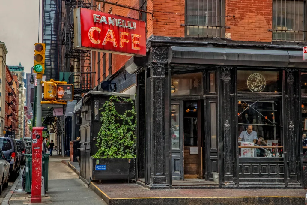 Но есть в Сохо и настоящие стоики. Fanelli’s Cafe (94 Prince Street) на том же месте с 1847 года! Оно пережило Сухой закон, запрет на курение и нашествие туристов. Да, богемная атмосфера изменилась, но старая барная стойка и дух истории остались. Не сдает позиций и Balthazar (80 Spring Street) — по-прежнему лучший французский бистро в городе, где гул голосов и звон бокалов не смолкают с утра до поздней ночи. А если хочется окунуться в атмосферу «того самого» артистического Сохо, загляните в Broome Street Bar (363 West Broadway). Полутемное, слегка обшарпанное заведение, открытое в 1972 году, кажется, совсем не изменилось и служит порталом в прошлое.